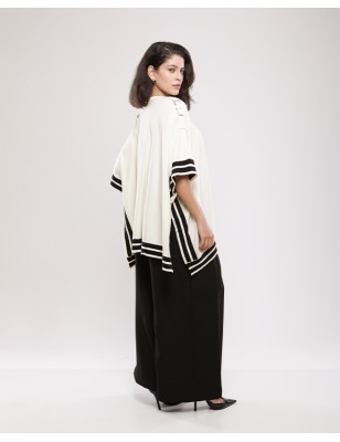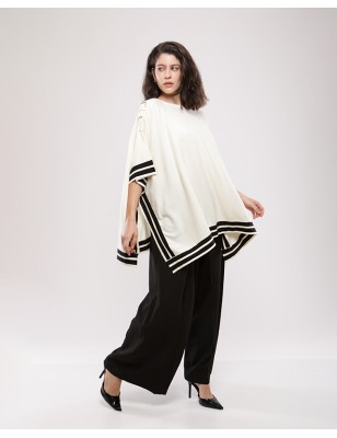 Poncho en laine AURORE à rayures allie chaleur, confort et élégance avec sa coupe ample et fluide. Parfait pour un look chic et décontracté durant la mi-saison ou l’hiver.