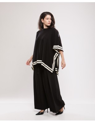 Poncho en laine AURORE à rayures allie chaleur, confort et élégance avec sa coupe ample et fluide. Parfait pour un look chic et décontracté durant la mi-saison ou l’hiver.