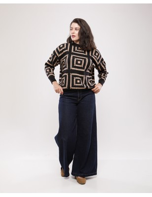 Pull SOLA en maille épaisse séduit par son motif à lignes graphiques moderne et élégant. Chaud et confortable, il apporte une touche tendance à vos looks d’hiver.