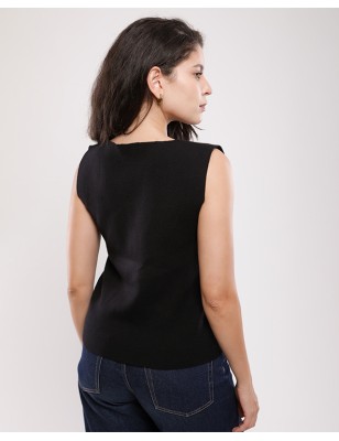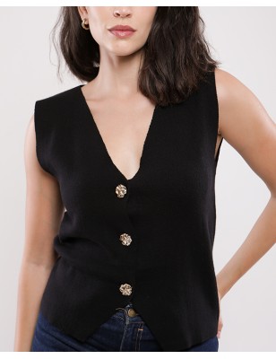 op en maille URVI avec boutons dorés séduit par sa matière douce et raffinée et ses boutons dorés qui ajoutent une touche d’élégance. Une pièce chic et intemporelle, parfaite pour un look sophistiqué et féminin.