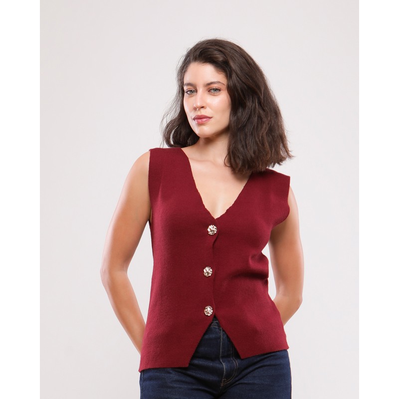 op en maille URVI avec boutons dorés séduit par sa matière douce et raffinée et ses boutons dorés qui ajoutent une touche d’élégance. Une pièce chic et intemporelle, parfaite pour un look sophistiqué et féminin.