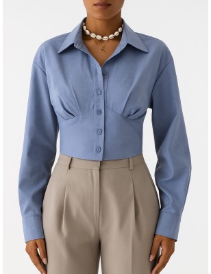 Chemise femme en popeline. Coupe au niveau de la poitrine et col classique.